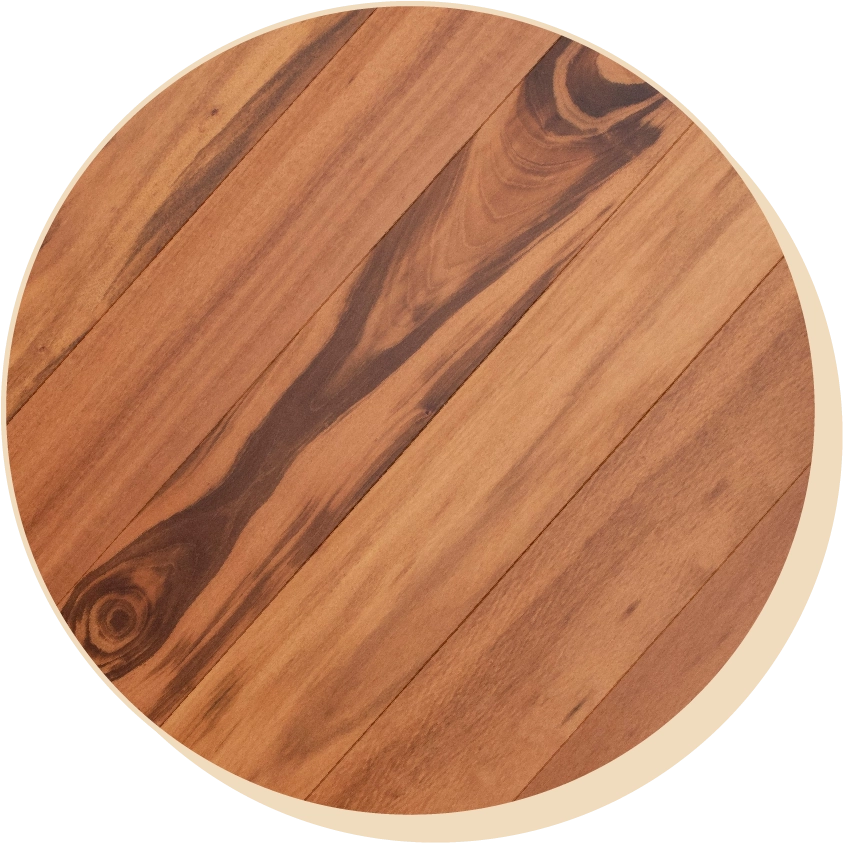 La Jatoba es conocida por ser una de las maderas más duras y resistentes del mercado, superando incluso al roble. Destaca por sus tonos que van desde el anaranjado sutil hasta un marrón rojizo profundo, aportando una calidez inmediata a cualquier espacio con una vida útil casi ilimitada.